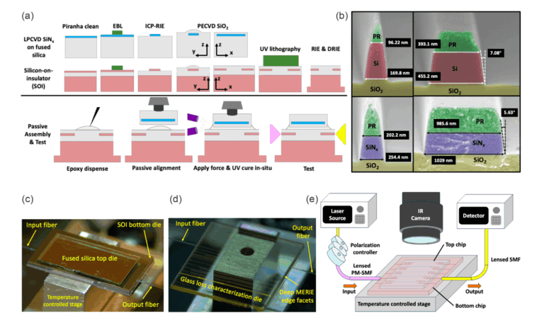 An experimentally demonstrated, vertical chip-to-chip evanescent coupler between silicon nitride (SiNx) and silicon (Si) is presented with the coupler loss measured to be 0.39 ± 1.06 dB at…